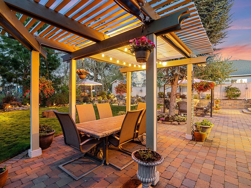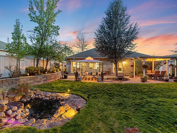 Your Exclusive Hollow Pine Retreat! This single-story, 3-bedroom 3 full bath gem has an open floor plan and is nestled between two quiet cul-de-sacs in the lovely Hollow Pine Estates community. This well-maintained property features a 3-car garage, accessible attic storage and a side yard space for your boat or RV, complete with power hookups. Home has a southwest facing driveway which allows for quick snow dissipation. The redesigned kitchen is adorned with quartz countertops and top-tier Samsung appliances - think double oven and chic fridge - as well as an insta hot water feature. The spacious landscaped/fenced backyard is accessible via sweeping sliders to reveal a melodious waterfall/pond, multiple fruit trees, and an extended paver patio shaded by an automated awning. There are numerous lighted pergolas so you and guests can relax and enjoy the quiet babbling water feature as well as the cozy firepit. Experience a lifestyle unbound, with no HOA fees.