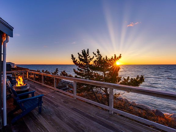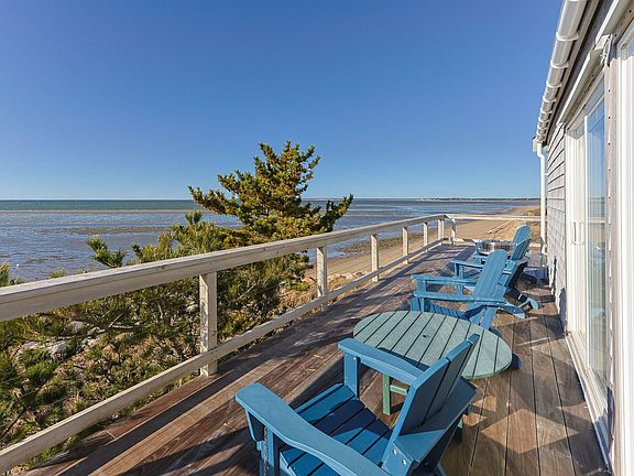WATERFRONT CAPE COD BAY- located in the highly desired Saltworks area of Eastham this 3 bedroom, 1.5 bath beach house is direct waterfront with a beautiful sandy beach and sunsets that never get old facing west. The three level floor plan offers an open floor plan on the main level with cathedral ceiling with beams, multi glass sliders that allow access to a wraparound cedar deck for enjoying the views with a feel of connection to nature. The middle level offers a half bath, laundry area, a tuck away play area for kids. The lower level offers a full bath, three bedrooms, two of which have exceptional views outward over Cape Cod Bay. A detached two car garage offers plenty of room for water toys and cars. The property has a feel of having a large lot. The property has had numerous upgrades, roof, windows, town water, septic, floors, bathrooms, upgraded revetment with custom stairs, and more! Possible mooring in front of your beach house, and potential of buying turnkey.