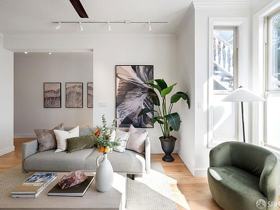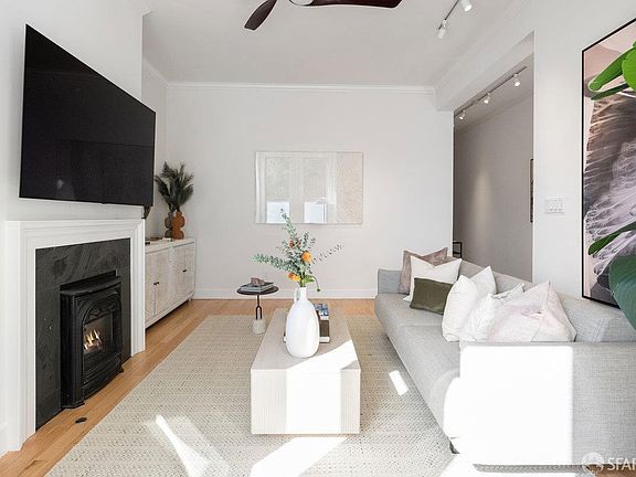 This stunning remodeled Noe Valley condominium offers sophisticated design and beautiful contemporary finishes. Thoughtfully updated, this property features 2 bedrooms, 1 bathroom, soaring high ceilings, a spacious and ideal open floor plan with refinished hardwood floors throughout, a gorgeous living room with stone-wrapped fireplace and custom floating shelves, excellent natural light, and a sleek modern kitchen with dark countertops, stainless steel appliances, and wine fridge. Additional amenities include in-unit laundry, a modern bathroom with LED lighting mirror and designer vanity featuring quartz counter and walnut veneer paneling, plus a charming common backyard with seating areas and convenient storage. Located in a charming classic Victorian building, this spectacular property sits on a prime block adjacent to Juri Commons Park and the vibrant Noe Valley 24th Street and Valencia corridor, showcasing exquisite restaurants, trendy boutiques, and vibrant cafes. Noe Valley is one of San Francisco's most coveted neighborhoods, offering great weather and the urban lifestyle sought by many people living in San Francisco, with several convenient transportation options including BART, MUNI surface trains, corporate shuttle buses, and excellent freeway access to Silicon Valley.