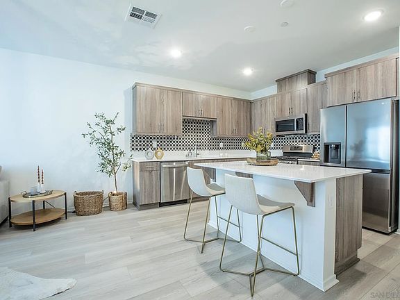 Incredible opportunity to own a gorgeous, upgraded townhome in the beautiful Citro Community of Fallbrook, nestled in the rolling hills of Monserate Mountain Preserve and surrounded by incredible nature's views. Nowhere else you will find a newer, fully upgraded home with modern features that has a two bedrooms plus a loft, a two car garage and paid off solar system with such of attractive value. Anyone would like the wooden modern kitchen cabinets with beautiful grain texture with contrasting quartz countertops throughout, cool large plank LVP flooring, designer light fixtures, paid of solar with level 2 EV charger, custom window treatments and upgraded appliances. Citro community is perfectly positioned between San Diego, Orange County and Temecula with easy access to 15 and 76 freeways. It is surrounded by beautiful nature and has walking trails weaving around the entire community. A large community swimming pool area with a massive modern party room with a large tv, fireplace and multiple sitting options as well as adjacent bbq spot is conveniently available for full enjoyment. The Citro community's natural beauty is unique with the backdrop of rocky mountain hills and the canvas of the vast ever-changing sky, offering amazing sunset views throughout the year.