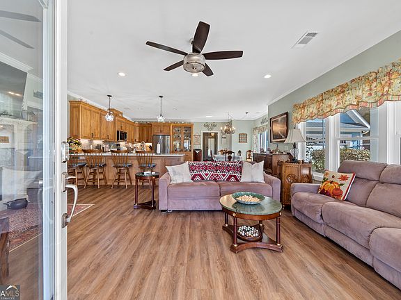 Welcome to this exceptional custom-built 3 bedroom, 2.5 bath home perfectly positioned on a spacious lot with an absolutely spectacular view of Lake Sinclair from the non lakefront side of the road. From you moment you arrive, you'll appreciate the quality craftsmanship, thoughtful design, and serene setting that make this property truly special. Step inside and experience the open-concept layout that's perfect for relaxing and entertaining. The large eat-in kitchen is a chef's dream. Featuring ample counterspace, exceptional custom cabinetry, and beautiful lake views that make every meal a pleasure. The adjoining living room offers a comfortable gathering space with plenty of natural light and a seamless connection to the outdoors. The primary suite provides a peaceful retreat, complete with a private bath with a glass walk-in shower and views the lake. Two additional bedrooms and another full bath with a tiled walk-in bath ensure plenty of room for family and guests. Outside enjoy the expansive yard with a screened porch in the back with a private backyard setting, Enjoy your morning coffee on the large covered front porch or evening cocktails with neighbors or guests enjoying your lake views. It's famous for this! Come see this wonderful off water home today so you can enjoy it's beauty!
