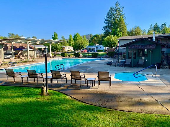 Charming 2 bedroom, 2 bathroom mobile home with updates located in the desirable and gated 55+ retirement community of Murphys Diggins Mobile Home Park. Conveniently located close to downtown where you will find boutique shopping, restaurants and wine tasting rooms. Walking distance to store, bank and post office. Situated on a prime lot where you can enjoy your private view of pasture and oaks from the deck. Renovation/Improvements since 2023: Walls sheetrocked; kitchen renovation to include new stainless steel appliances, quartz countertops, cabinets and recessed lighting; flooring, interior and exterior paint. Roof recently tarred. Three mini splits keep the home at comfortable temperature all year long. Option to have a cozy wood burning fire during cooler months. Master bedroom has a walk-in closet and large bathroom with good natural lighting and a wall of storage cabinets. Second bathroom has a walk-in tub with a hand held shower. Open living/kitchen/dining floor plan with built in dining hutch. Covered carport gives you easy access to the kitchen. Two sheds with one providing electricity and a window could be used as small workshop space. Lot has some lovely mature landscaping and a spacious backyard which is a nice addition to a relaxing moment in your day. Step off of the living room through a sliding glass door that takes you into a serene screened in porch bringing the outside in where you can enjoy your morning cup of coffee/tea. Indulge yourself in the park's amenities which includes a pool, jacuzzi, two saunas, fitness center, pool table, billiard room and even a club house featuring a fireplace. Weekly/monthly events are also organized to keep residents active. Murphys was named one of Forbes' best U.S. destinations for 2021. This is a wonderful retirement location. Don't miss this one!