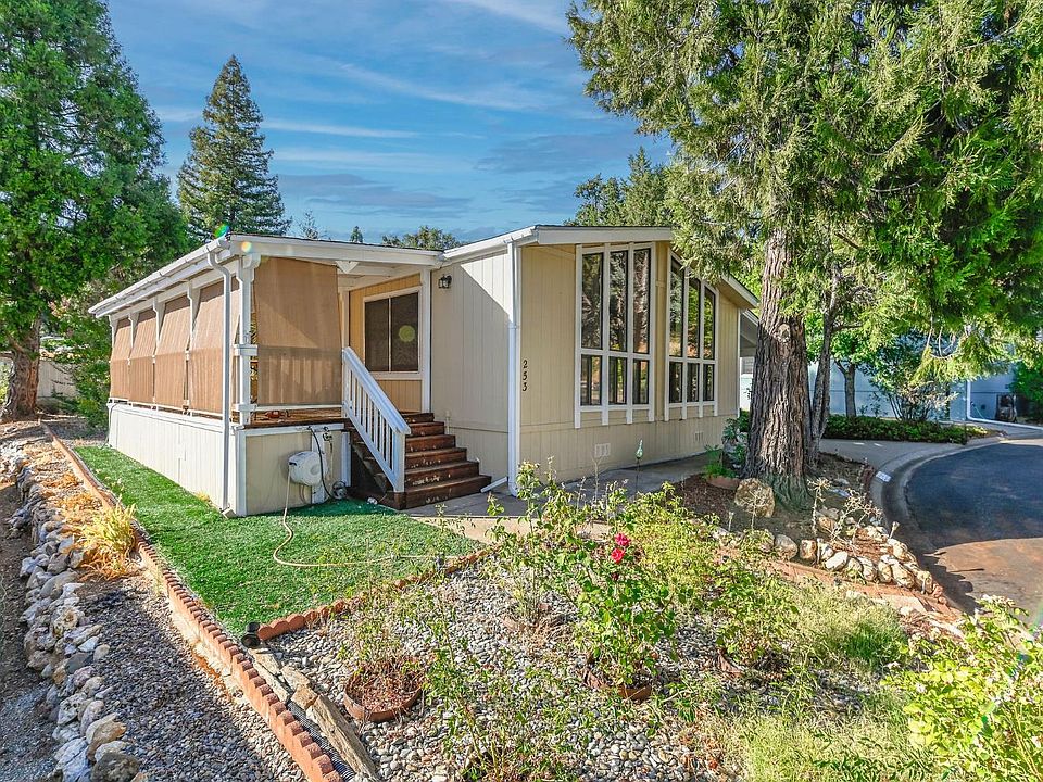 Spacious 2 bedroom plus den, 2 bath modular in Murphys Diggins. The open floor plan features vaulted ceilings, large windows, and a dining area with built-ins. The primary suite offers a generous layout with a walk-in closet and a private bath. A versatile den works well as an office, craft room, or guest space. Enjoy the screened porch for relaxing afternoons and the large storage shed for convenience. Located on a quiet cul-de-sac just minutes from downtown Murphys. The Murphys Diggins 55+ community offers a clubhouse, pool, and moremaking this home a perfect blend of comfort, privacy, and convenience