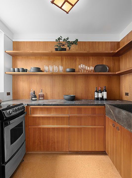 Welcome to 340 W. 55th Street, Apt 7B - a beautiful corner two-bed, two-bath apartment with three exposures on one of the best tree-lined residential blocks in Midtown. Perched on the 7th floor of The Sherwood, this unit offers stunning skyline views from both bedrooms and plenty of space to create a sanctuary of a home in the heart of Manhattan. Enter into a spacious foyer where one of the two full baths is located . The generous living room features built-in storage, space for dining and flows directly into a beautiful updated kitchen complete with elegant custom teak cabinetry, natural soapstone countertops, and a full-sized dishwasher. Off of the living room are two corner bedrooms equipped with large wall length closets with built-in storage.
