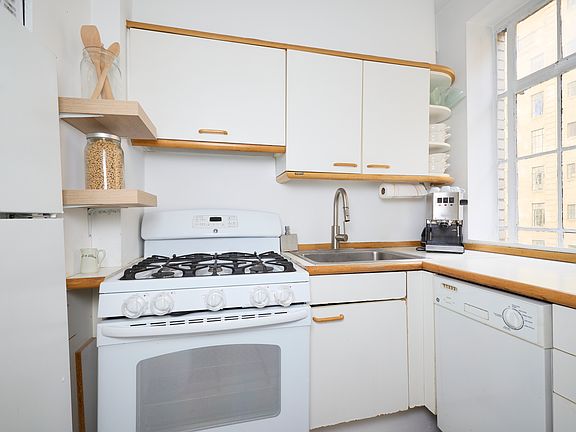 Residence 4H is an extra-large pre-war studio apartment with three south-facing windows looking over the Parc Vendome's beautifully landscaped English Tea Gardens. This spacious studio offers updated strip wood floors, modern appliances (including dishwasher), a windowed kitchen, a separate dressing room (large enough to tuck in a full-sized bed), and 3 very generous closets.