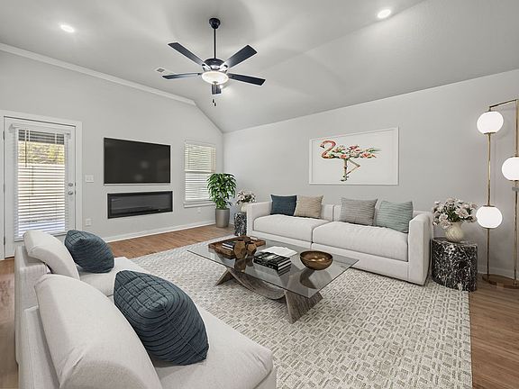 Lovely open patioSplit bedroom floorplanVaulted ceilingsSpacious bedroomsElectric fireplaceFully fenced backyardLovely dining area