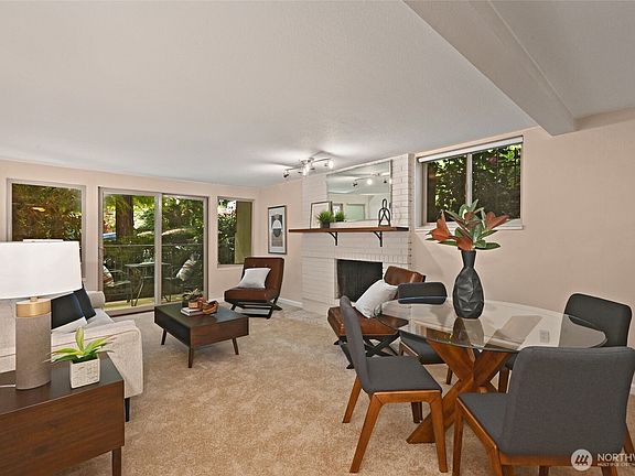 Discover this serene, end-unit condo in Bertona House, a boutique 15-unit building. Sunlight pours into the spacious living room through large windows, highlighting the cozy wood-burning fireplace. The thoughtfully designed layout includes two well-sized bedrooms, featuring a tranquil primary suite with an attached ¾ bath. The second bedroom is conveniently located near the full bath and main living area.Enjoy tasteful updates throughout, a well-managed HOA, with low dues covering hot water, water, sewer, garbage, landscaping, common area maintenance, and earthquake insurance. Nestled near Discovery Park, Fisherman’s Terminal, and Magnolia Village, with a quick commute to downtown Seattle—this is an opportunity you won’t want to miss!