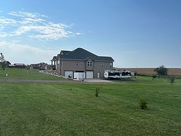Step outside to relax on the covered front porch or the rear covered deck, where you can take in the peaceful surroundings and views. The walk-out basement opens to a paver patio for entertaining or relaxing. Part of the yard around the back patio is enclosed with a chain link fence. Young trees have been started around the yard, including Black Hills Spruce, Lilac, Apple, Aspen, Green Ash, Seedless Cottonwood, Amur Maple, and Willow. The home is edged with rock, perennials, and shrubs. A walk to the back of the yard will bring you to a large garden space and a garden shed with water spigot. Enjoy the asparagus and strawberries that come back every year.