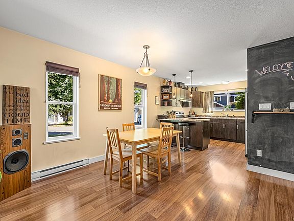 FANTASTIC END-UNIT IN STEAM ENGINE ESTATES! This coveted Queen Anne floor plan offers 1410 sq ft of stylish, functional living with the primary bedroom on the main level, complete with walk-in closet and 3-piece ensuite. Upstairs you’ll find two more generous bedrooms, including one with a funky accent wall ~ perfect as a home office, creative studio, or 3rd bedroom. The bright main level flows seamlessly to your private back patio, framed by mature trees, plus a side yard unique to this end unit. Extras include ceiling fans with lights in every bedroom, a 2-year-old hot water tank, single garage with remote, and lots of visitor parking close by. Family-friendly and move-in ready, this home puts you steps from Ulverston Park trails and just a short walk to downtown Cumberland ~ where you’ll find coffee shops, pubs, live music, vibrant community spirit, and world-class biking and hiking trails right at your doorstep. Move in and start living the ultimate Cumberland lifestyle today!