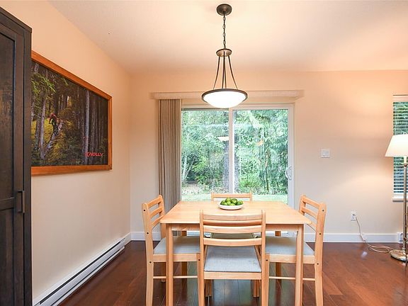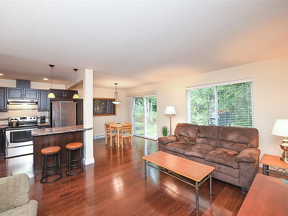 End-unit 3 bed/3 bath townhouse backing onto peaceful greenspace in popular Steam Engine Estates! The main level offers an open-concept layout connecting the kitchen, living, and dining areas. The kitchen features a central island with eat-up bar, generous cabinet/counter space, and stainless steel appliances. Sliding glass doors open to a private patio surrounded by mature cedar and fir trees. Upstairs, you’ll find three bedrooms, including a spacious primary suite with 3-piece ensuite and walk-in closet, plus a flex space ideal for a home office or reading nook. Additional highlights include a single-car garage, parking for two vehicles, and a well-managed strata with a healthy contingency fund. Pet-friendly and no age restrictions! Immerse yourself in nature while enjoying vibrant village living, with local shops, cafes, and eateries just a short stroll away, and world-class mountain biking and hiking trails right at your doorstep.