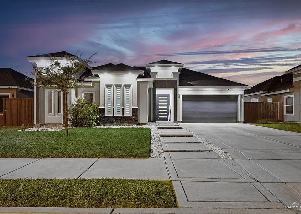 Welcome to this stunning modern home in a desirable Edinburg gated neighborhood! This beautiful residence offers 3 spacious bedrooms, 2.5 baths, and a 2-car garage, showcasing sleek architectural design and elegant curb appeal. Step inside to an open concept layout perfect for entertaining, featuring contemporary finishes, abundant natural light, and a seamless flow between living, dining, and kitchen areas. The gourmet kitchen offers ample cabinetry, stylish countertops, and a modern aesthetic that ties the home together. The primary suite includes a luxurious bath and generous closet space for added comfort. Enjoy outdoor living in the large backyard, ideal for gatherings, gardening, or future customization. Conveniently located near schools, shopping, dining, and easy access to major roads, this home combines modern design with everyday convenience a true must-see in Edinburg!