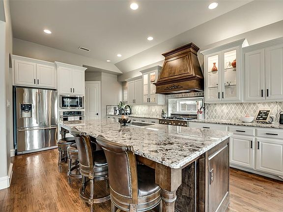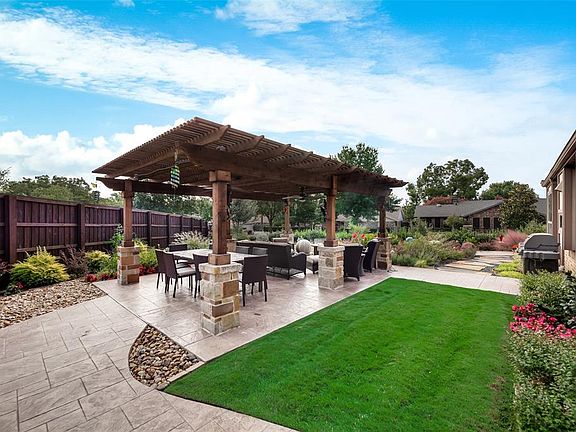 Enter AMAZING*Meticulously updated throughout with custom textured walls, paint & window treatments*Gourmet kitchen offers built-in oven, separate free standing gas range, granite countertops, glass front cabinets, Meile DW, upgraded backsplash & Pella door*Enjoy this study with Pella sliding door & blinds which leads to custom outdoor pergola living area & dining area, patterned & stained concrete patio, walkway & grill area, Stone yard section is designed for wood-burning firepit, Extensive landscaping includes privacy hedges and plants along wrought iron fence*Private 2nd bedroom downstairs with bath for guest*Upstairs features gmrm with barn doors, separate game table area, half bath & 2 brs with J&J bath*