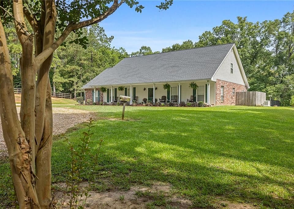 Beautiful country estate on 14.984 rolling acres, just minutes West of I55 at Kentwood. A gated, winding drive through a mature pine forest with a pond view, leads to a thoughtfully designed domain. The homesite is 2 1/2 acres of manicured open grounds and yard, featuring the home with an attached, fenced pool area extending from the back, that has an outdoor kitchen, bar and a half bath for outdoor entertainment. The spacious split floor plan features primary suite with dual walk-in closets and a spa-inspired bath. Living room with gas/wood burning fireplace. Open kitchen/dining combo showcasing 3 French doors leading to your resort-style outdoor living space. Massive 40x60 screened back porch for dining and bar for year round gatherings. Inside, an upstairs game room with custom bar adds even more entertaining space. Large floored attic for storage. Other features include 25Kw whole-house generator, 30x28 enclosed workshop (12' roll-up door, 15' ceilings) 36x30 two bay drop shed, (14' ceilings) 24x10 equipment shed and small greenhouse. Enjoy peaceful elegant living 7 miles west of I 55 at Kentwood, 40 mi N of Hammond, 65 miles Northeast of Baton Rouge and 1.5 hours North of New Orleans. The acreage is comprised of the 2 1/2 acre homesite, a pond in the entrance area of the property, and the residual of the tract is mature pine and hardwood timber. Entirety of the 14.984