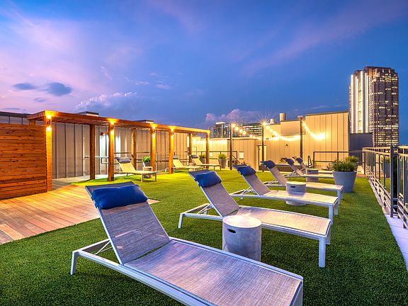 - Exterior features: Chrome Hardware, Custom Tile Backsplash, Deposit Alternative Available, French Door Refrigerators, Granite Countertops, Kitchen Islands with Bar Seating, LED Backlit Vanity Mirrors, Online Rent Payment, Parking Available, Pet Friendly, Plush Carpeting in Bedrooms, Pre-Qualified Renters Insurance, Private Entrances in Select Homes, Shaker Style Cabinetry, Summer Kitchen with Al Fresco Dining, TV Lounge, View Type: Breathtaking Dallas Skyline Views, Wood Plank Style Flooring