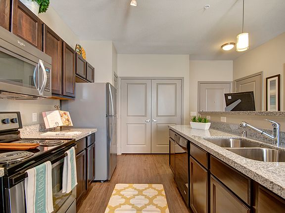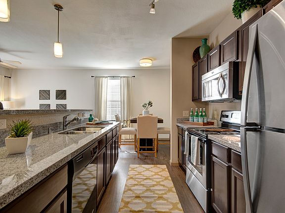 - Exterior features: *In Select Homes, Attached Garages*, Barbecue, Built-In Desks, Customizable Upgrades Available*, Designer, Custom Cabinetry, Hardwood-Inspired Flooring, On-Site Maintenance, Online Rent Payment, Package Receiving, Parking Available, TV Lounge, Walk-In Showers