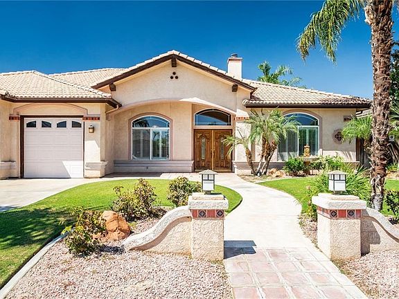 This expansive and beautiful single-story home offers over 2,758 sq. ft. of living space, and a big size lot of 10,890 sq ,ft. featuring 4 bedrooms, 3 bathrooms, and a bright open layout perfect for both everyday living and entertaining. Inside, you'll find vaulted ceilings, arched passageways, a welcoming brick fireplace, and a spacious family room with custom built-ins. The kitchen is designed with functionality in mindfeaturing tile countertops, a center island, and abundant cabinet spacewhile overlooking the main living areas for seamless interaction. The primary suite offers a peaceful retreat with a large sitting area, over-sized walk-in closet, and a spa-inspired en-suite bathroom with dual vanities, soaking tub, and separate shower. Secondary bedrooms are generously sized with plenty of natural light. Step outside to your private backyard oasiscomplete with a sparkling pool, tropical landscaping, and ample patio space ideal for gatherings. With a charming front elevation.