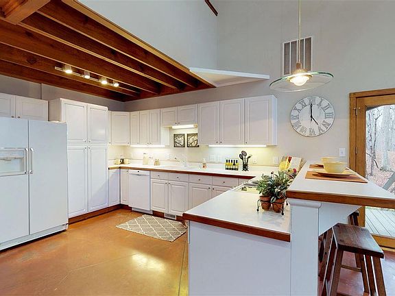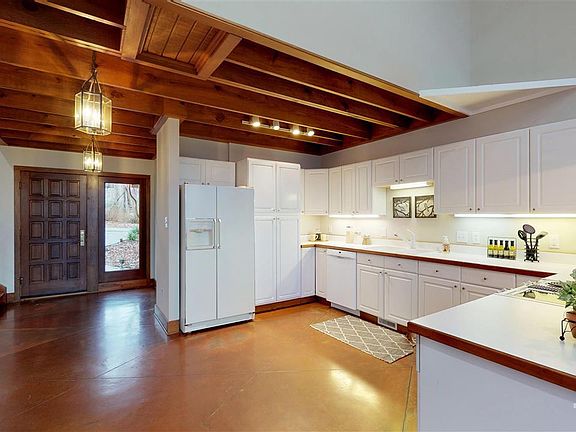 Contemporary home on 11 acres of wooded splendor with a private pond awaits its new owner. Gorgeous 2 story great room w/ wall of windows & stone front wood burning fireplace. Concrete floors downstairs. The kitchen opens to the great room and dining area. 1st floor owners suite has huge walk in closet and luxury bath w/ vaulted ceiling. 1st floor office w/ built ins. Sunny loft bedroom upstairs with full bath and access to semi finished room over 2 car garage. New Roof '17 and (2) new HVAC systems 17/18