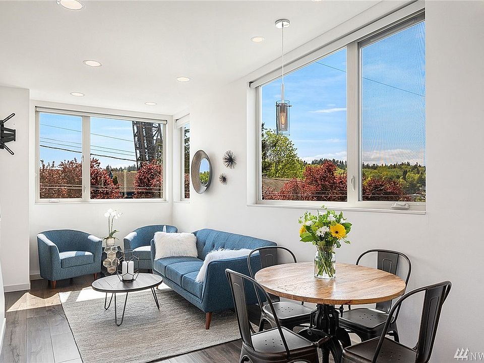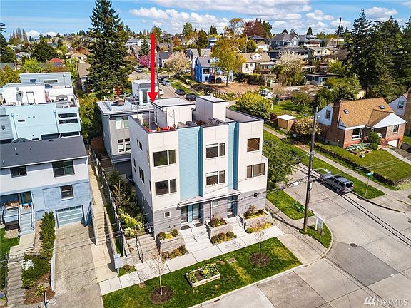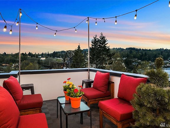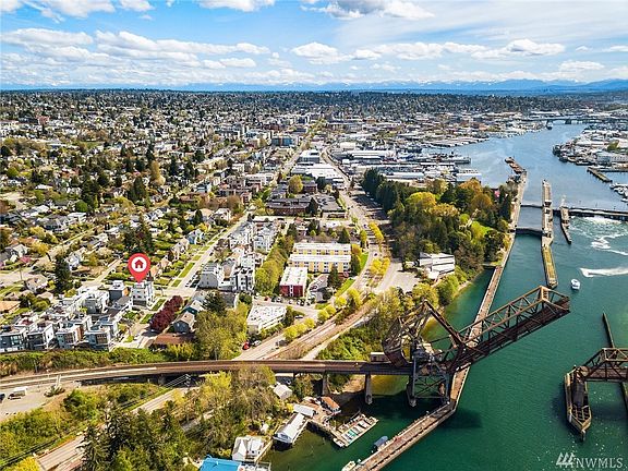 Peaceful location at the quiet end of Market St, just minutes to everything Ballard has to offer. This end-unit townhome enjoys views of Salmon Bay, the Locks & Olympics from the 318 SF rooftop deck. Like-new with designer cabinets, quartz counters & fresh paint. First floor bedroom & full bath, great for home office or AirBnB. Master w/walk-in closet & heated bath floors. Efficient tankless H20 & ductless mini-split for heat & A/C. 1 dedicated parking space & storage closet in back of building.