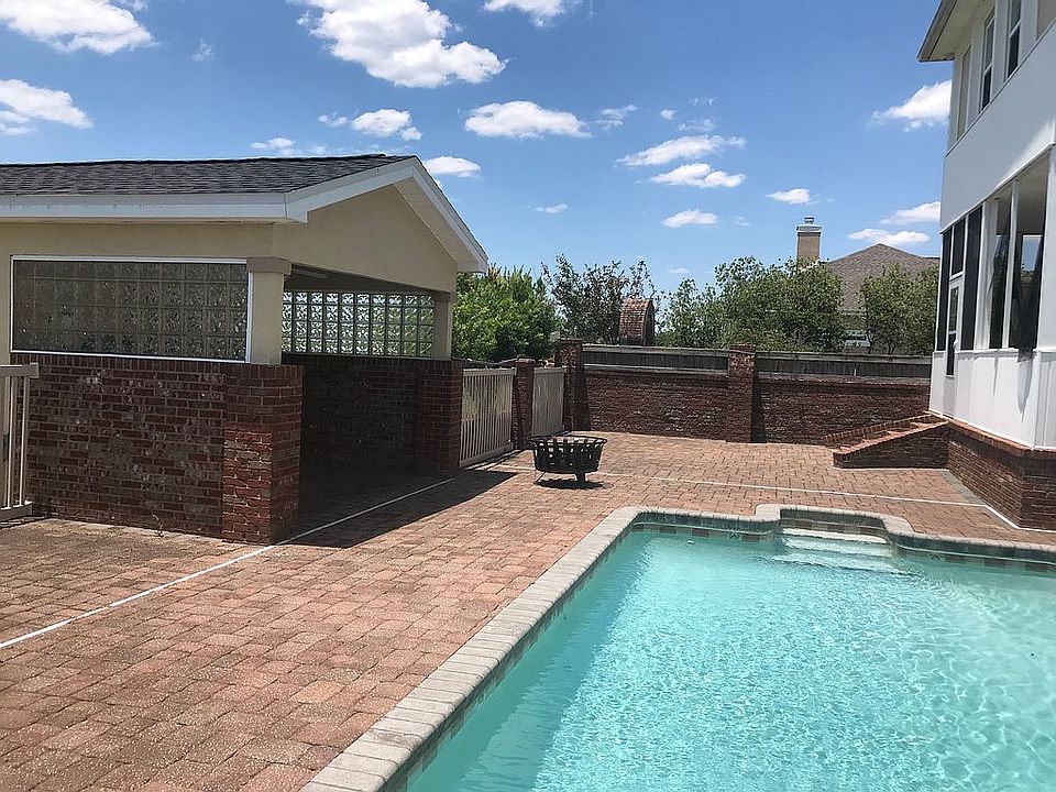 Waterfront lotHeated and cooled spaceIn-ground gunite poolSpring-fed lakeBrick paversWriting desk areaPlenty of inside storage