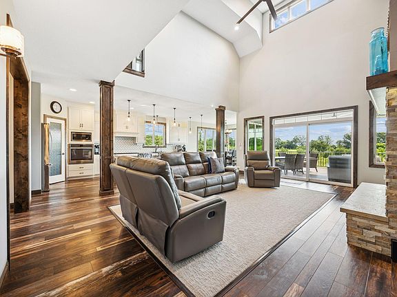 This 2015 custom-designed home will wow you from the moment you walk through the door with its 22-foot ceiling, massive fireplace, and the panoramic view of the country. The partially covered deck spans the entire width of the home. This home is ideal for entertaining with the gourmet kitchen, featuring a 9-foot granite island.