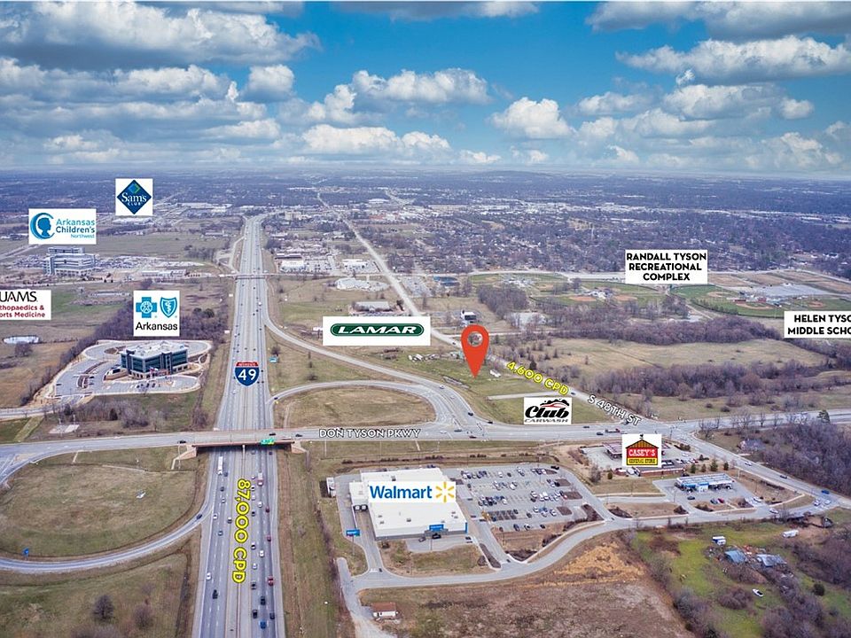 Prime development opportunity in a rapidly growing area. Acreage is centrally located in the new Springdale Care Corridor. Property is surrounded by many large scale developments taking place along I-49 & Don Tyson Pkwy. 2.79 acres remaining, 1 acre under contract. Club Carwash coming to adjoining property to the south. Lamar Advertising recently constructed to the north. Near Walmart Neighborhood Market & Casey's General Store. High traffic area with visibility from I-49. Flat, clear property with all utilities at site.