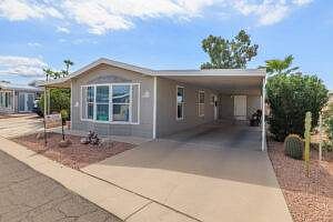 This home is well kept with 2 bedrooms and 2 bathrooms across 1,024 square feet of comfortable living space. The home faces north with beautiful views from the covered patio that runs the length of the home. The main living space is shared with the kitchen making for easy living and entertaining. The open layout and cheerful atmosphere make this home both inviting and functional. *********PRIVATE BACKYARD WITH PERIMETER WALL*************Experience Thesman Communities Lifestyle, we are an active 55 plus community where luxury meets affordability. For over 40 years we have set the standard with world class amenities and year-round activities. Our community is a 24-hour gated community, with a beautiful clubhouse including ballroom, library with computers and individual rooms for cards, billiards, arts & crafts and fitness center. Enjoy outdoor amenities heated pool & spa with cabanas, community lake, BBQ area, pet park, sport courts for pickleball and shuffleboard. Our activities director assures a full calendar of social and recreation events. Our shuttle bus makes it easy and convenient to attend sporting and special events, plus local shopping. Whether you want to relax or stay active our vibrant communities offer everything you need to enjoy life to the fullest. Discover Thesman Communities and start living the Thesman Lifestyle today!