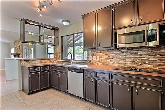 Recently updated 1 story home on large 1/2 acre corner lot in desirable Shady Hollow. New HVAC in July 2015, fresh interior/exterior paint, NO popcorn ceilings, stained concrete & hard tile floors throughout, glass tile back splash, 2011 stainless steel appliances including refrigerator, interior stone walls, cozy fireplace, open floorplan, formal dining, huge covered rear patio, massive private backyard with majestic oaks, over-sized garage w/work area, voluntary HOA, this is rare find & a must see!!!