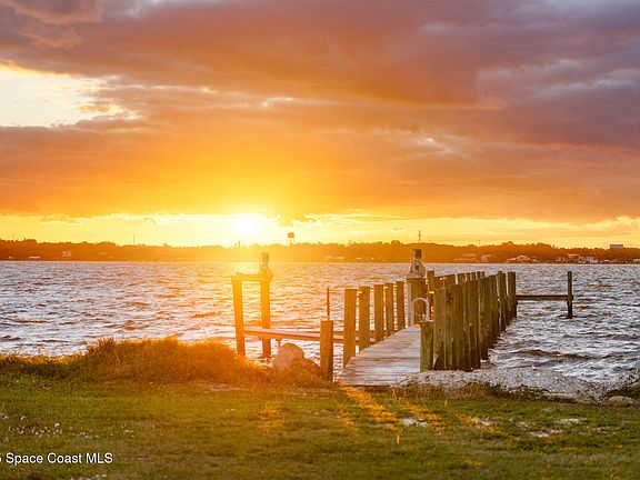 Experience breathtaking sunsets and vibrant waterfront living from this rare 4+ acre estate on coveted North Merritt Island. With 350 feet of direct Indian River frontage and a private dock, this property offers a unique connection to nature, private and secluded, yet with a front-row seat to the excitement of the booming space industry. Set at the end of a quiet street surrounded by lush tropical landscaping, this serene haven offers unmatched privacy and endless possibilities. Cruise from your backyard to nearby islands, dockside restaurants, or through the Canaveral Locks for a day of offshore fishing and adventure. The existing home is full of character and offered as-is, perfect for a peaceful retreat or as the ideal foundation to build your dream waterfront estate. With a gorgeous pool area and ample space to design a custom residence, imagine expansive river views, resort-style outdoor living, and sunsets that paint the sky in vivid color. Located just minutes from Kennedy Space Center, Port Canaveral, pristine beaches, and major highways, this property blends luxury, seclusion, and convenience. It is a rare opportunity for those who dream of an extraordinary riverfront lifestyle where every day begins with beauty and ends with a sunset over the Indian River.