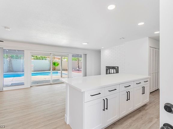 Completely remodeled single-story home! Welcome to 3400 Turquoise Rd. This stunning property features a spacious layout with 4 bedrooms and 2 bathrooms. Situated on a great lot with a gorgeous pool! With brand new soft-close cabinets, quartz countertops, stainless steel appliances, luxury vinyl plank flooring, fresh paint inside and out, baseboards, light fixtures and so much more. Cozy fireplace, this home offers both elegance and comfort. Enjoy the backyard oasis with a pool for relaxation and large covered patio. NO HOA! Conveniently situated near shopping, dining, and parks, don't miss out on experiencing the best of Las Vegas living at 3400 Turquoise Rd.