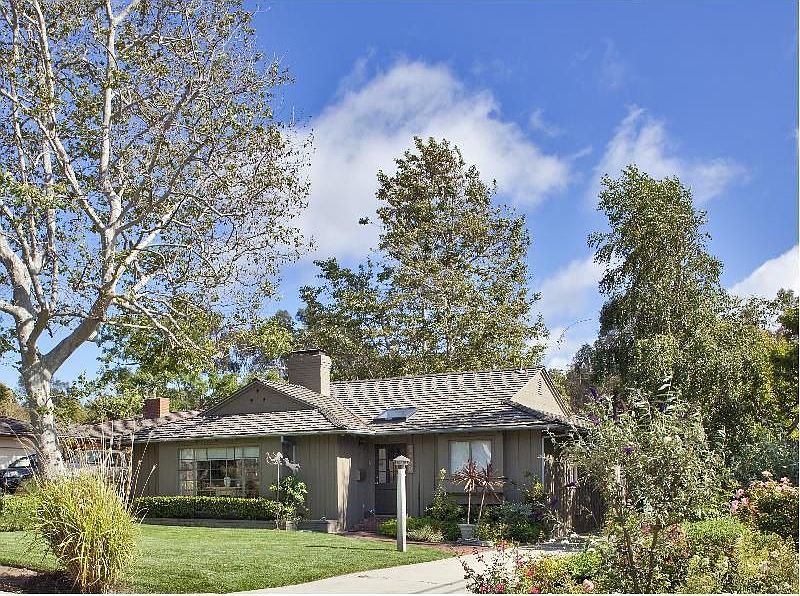 Located in the heart of the Valmonte area of Palos Verdes Estates this delightful one level home awaits a new owner. Great room surrounds one of the two custom designed fireplaces. Gleaming hickory hardwood floors add a special ambiance to the open floor plan. Enjoy the yards abundant foliage from all windows bringing the feeling of the outdoors in. The main house features two spacious bedrooms and two remodeled baths. The gourmet custom kitchen with top of the line appliances. The separate guest house with bedroom and bath are ideal for guests or for a home office.Heated patio overlooks the private yard and the fruit trees (lemon, oranges, pomegranate, tangerine and apricot) as well as rose and camellia bushes. Extra planting in in city easement give more space and privacy to this special home.