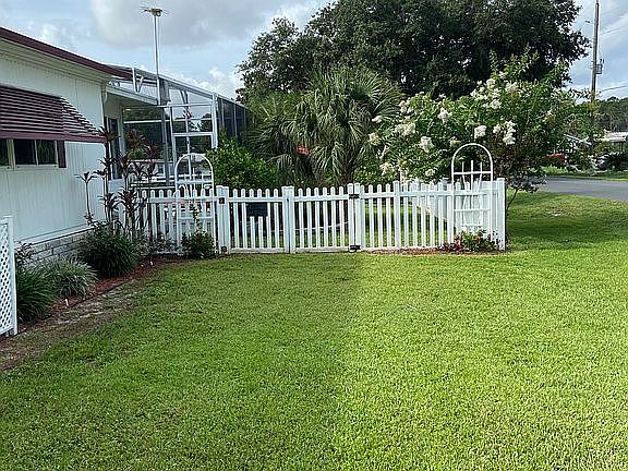 This home is located on a beautiful corner lot of Carl and Hodges Road. It is a 1981 manufactured home with lots of upgrades. It has 2 bedrooms and 2 full baths. One with a jacuzzi tub. It has professionally installed fire and smoke detectors. It has a Florida room addition with its own heat and air unit that adds another 200 square ft. of living space to the existing1,056 sq. ft. Has open concept of kitchen, dining and living room. Carport leads to a large screened in porch that opens to a breezeway leading to the pool and patio area. Patio has a lighted pergola and fountain with an archway to the backyard. It also has a separate door to laundry, storage and shop area. Backyard is fenced with a white vinyl picket fence with a gate that opens to the canal. There you will find a private covered boat dock with fish cleaning station and sitting area with a chimmenia. It has an electric cradle lift. Has a ramp that leads to a separate shop/garage building. It is a 24x24 medal building with concrete floor and Roll-up door accessible on Carl Road side.there is also a carport attached to the garage that is in the backyard. This building has 220 power and a 220 professional compressor that comes with it. Backyard has 4 fruit trees and a garden spot plus lots of flowers and flowering trees. The yard has a sprinkler system fed by the canal. From this property you can be in Eustis Lake in less than 5 min. which is on the Harris Chain of Lakes. From this property you are an hour and 10 min from Daytona beach. An hour to Orlando and an hour from the Orlando/Sanford airport. Call 352-801-1843 for a showing.
