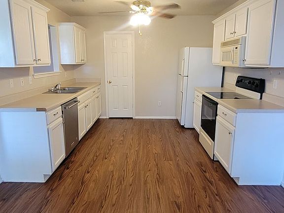 Conveniently located at the end of a cul-de-sac in the heart of Killeen, this cozy 4bd/2ba home offers space, and easy access to shopping, entertainment and Ft. Hood! The large living area welcomes you as you enter the home. It's open to the dining area and spacious kitchen which is fully equipped with a stove, microwave, refrigerator, dishwasher, garbage disposal, and pantry. The split floor plan offers privacy for the roomy master bedroom located to the back of the home. The master bath includes a walk in shower and seperate his and hers closets. The other bedrooms are located down the hall toward the front of the home. Each have plantation blinds, ceiling fans and share the hall bath. Through the sliding glass doors in the living room you'll exit out back to the covered patio and large backyard, great for outdoor entertaining! You'll also have extra storage with a shed located in the backyard.