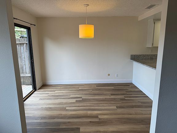 Spacious 2 bedroom, 1.5 bathroom condo (1200 sq ft) in Stonegate with attached one-car garage. Well-sized updated kitchen, dining room, and common area. Large bedrooms, with a balcony. Updated bathrooms. New luxury vinyl plank floors throughout the house with carpeted bedrooms. Cute backyard with a patio and large planter box for gardening.