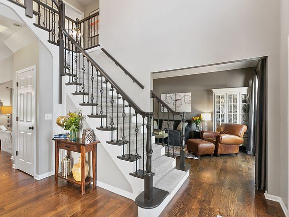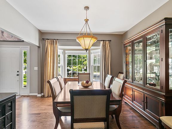 Stunning 2-Story home on a spacious lot in the sought-after Villages at Meadowlakes! Step into timeless elegance and modern comfort in this beautifully updated home. From the grand 2-story foyer with its sweeping curved staircase and wrought-iron spindles, every detail is designed to impress. The heart of the home is a chef's dream kitchen-custom white cabinetry, marble tile backsplash, quartz countertops, and a large center island ideal for entertaining. A farmhouse sink with a designer faucet and sparkling crystal light fixtures add a luxurious touch. All stainless-steel appliances are newer, blending style with functionality. The open-concept layout flows into a cozy family room featuring a brick wood-burning fireplace-perfect for chilly evenings. Floating shelves throughout the space add charm and practical storage, and they stay with the home. Refinished oak hardwood floors grace the main level, while newer maple flooring adds warmth to the upstairs hallway. The formal living and dining rooms are bright and welcoming, each with walk-in bay windows that fill the space with natural light. A first-floor office sits conveniently next to a stylish guest bathroom. Upstairs, all bedrooms feature brand-new carpeting and custom closet organizers-including a walk-in closet in two of the three other bedrooms. The updated hall bath includes a granite vanity and waterfall faucets. The spacious primary suite is a true retreat, complete with a granite double-sink vanity, a separate water closet, and a walk-in closet with custom built-ins. The finished basement expands your living space with a 5th bedroom and full bath-perfect for guests. A large rec room offers space for play or workouts, and the media area includes an electric fireplace and built-in media center.Step outside to enjoy the expansive fenced backyard with a patio and fire pit-ideal for entertaining. Both front and back yards are professionally landscaped for year-round beauty. Located in highly rated School District #204 and close to parks, ponds, trails, golf courses, Metra, expressways, shopping, and dining-this home truly has it all.Don't miss your chance to make this exceptional property your forever home.