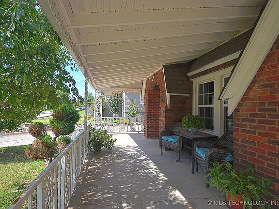 Gorgeous, adorable home nestled in the TU neighborhood. Come relax or entertain on the spacious front porch, or on the patio in the inviting oasis of a backyard w/privacy fence. Large carport to accommodate multiple cars. Beautiful wood flooring throughout main parts of home. Flexible room at back of home was used as a 3rd bedroom, could also be office or sitting room with sliding glass door walkout to back yard. Lots of updated items: Newer windows 2015. Newer wood-look vinyl flooring in 3rd room 2019, Newer roof on both house and garage + updated carport covering 2022, newer oven 2020, new dishwasher 2025, fresh paint.