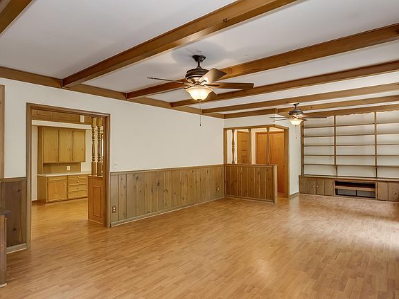 Stone fireplaceCeiling fansBeamed ceilingGood sized bedroomsPrivate deckVaulted ceilingsLarge dining and livingroom