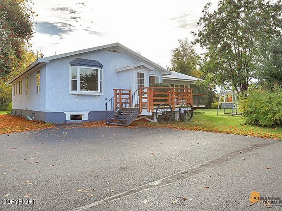 Discover this rare 4.93 acre homestead property w/ convenient access to town! Property boasts a 3bd (+flex room)/2ba raised ranch home w/ finished basement + outbuildings galore - 3 detached shop/garages, carport & greenhouse. Highly desirable area yet private & serene. Property is Unrestricted & may make a great office/business location w/ views of Pioneer Peak. Brand new 4bd septic in Aug 2025!All garages are heated! Property also includes a back up generator. Outbuildings include a 36X36 Shop with garage door, one 18X28 detached Garage, another 16X32 detached garage, 32X22 Carport/Pole Barn and 20X22 Greenhouse on meticulously maintained grounds with landscaping. New 4-bedroom approved Septic Installed in 2025. Finished basement includes Flex Room.