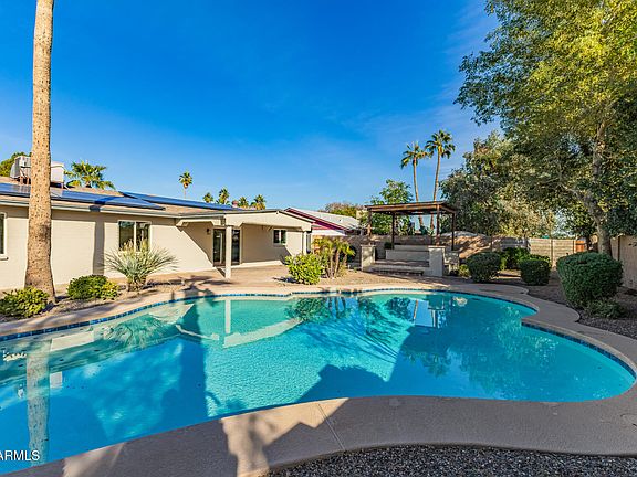 Fully remodeled home Perched on a premium corner lot, this beautifully updated home is a rare find in one of Phoenix's most rapidly evolving corridors.Outstanding location just off the 51,down the street from Cactus Park & the re-imagined Paradise Valley Mall.Inside, an inviting open layout welcomes you with wood-look flooring,a soft neutral palette,& recessed lighting throughout.The sleek kitchen features Quartz waterfall counters,white oak cabinetry,floating shelves,SS appliances,a modern subway tile backsplash,& elegant pendant lighting over the island.The spacious main bedroom includes a private ensuite bath with a beautiful tiled walk-in shower & white oak vanity.The backyard is designed for effortless living w/ a sparkling pebble pool,tons of pavers,covered patio, & raised pergola. Added bonus:SOLAR IS PAID OFF!20 Year Solar Lease initiated 2014 is PAID IN FULL - buyer to assume.N/S exposure, and a 2-car garage with RV gate access from the alley. Just minutes from the desired Paradise Valley redevelopment and moments from Central Scottsdale, the Biltmore, and upscale Paradise Valley, you'll enjoy effortless access to the Valley's best dining, shopping, and entertainment.Homes in this location rarely come available, and this one is priced to sell. Don't let this opportunity pass you by!