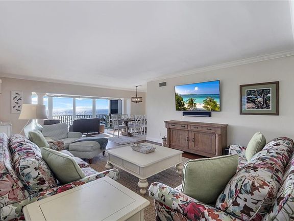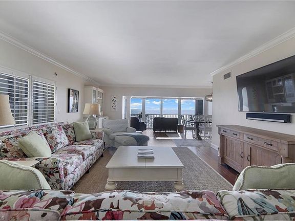 Welcome to Dolphin View ~ Sophisticated Boutique Beachfront Living. Wake up to the soothing sounds of the Gulf and take in breathtaking panoramic views from this tastefully updated beachfront residence. Nestled in the prestigious Moorings neighborhood, this rare gem offers an elevated coastal lifestyle just steps from the shore, with exclusive concierge services ensuring effortless luxury. Offered at pre-pandemic pricing, this home presents an exceptional value as the best-priced beachfront property on the market. From its beachside vantage, enjoy unobstructed views of the Gulf, creating a front-row seat to mesmerizing sunsets. Situated in an exclusive, low-density community, residents benefit from private beach access and on-site management, ensuring an intimate and tranquil retreat. Positioned in the coveted 3-stack location of the West Tower, this residence boasts one of the most sought-after floor plans, designed for seamless comfort while hosting and entertaining. The spacious and open layout flows effortlessly into an expansive lanai—an ideal setting for morning coffee or evening cocktails against a stunning coastal backdrop. Three luxurious master suites each feature en-suite bathrooms and custom-built designer closets, offering the ultimate in privacy and comfort. Resort-style boutique amenities enhance the experience, including a heated pool, spa, fitness center, and an elegant social lounge. Located just minutes from Venetian Village, 5th Avenue, and Waterside Shops, the home provides easy access to fine dining, upscale shopping, and luxury boutiques. Indulge in Naples’ renowned culinary scene, where exceptional restaurants offer everything from fresh seafood to gourmet international cuisine, all just moments from your doorstep. This rare end-unit combines elegance, comfort, and exclusivity with refined designer finishes, ample storage, and under-building parking—all completely move-in ready. Now available at an exceptional value, this is a rare opportunity to own a sophisticated beachfront residence in one of Naples’ most coveted coastal communities. Don’t miss your chance to experience the ultimate in beachfront luxury. The association owns the land.