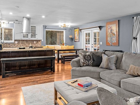 Updated 3 bed, 2 bath open concept home w/fully finished walk out basement. 1 block from private park with access to Hicks Lake! gated RV parking, fully-fenced, private backyard, 2 story composite deck w/hot tub pad, fruit trees, greenhouse and beautiful landscaping surrounds property. Large front yard w/ 6 cherry blossom trees which bloom in spring. Extra large 2.5 car garage w/work bench. Large main driveway and 2nd driveway for added parking! Picture windows, XL laundry room, bonus room, 2 large living spaces, wet bar, wood laminate flooring throughout. New & updated: heat pump & furnace supply central heat & AC, hot water heater, roof and so much more. This home has so much to offer and has been very well taken care of by the owners.