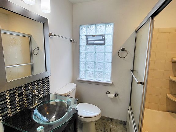 Inside, you'll find a spacious, remodeled kitchen with stainless steel appliances and a bright dining area. The living room and two main-floor bedrooms feature gleaming hardwood floors, complemented by an updated contemporary bathroom.