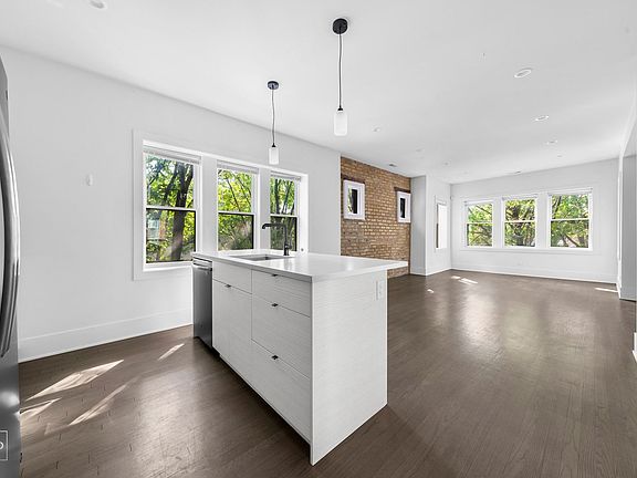 Enjoy an open, modern layout that boasts a large and open living/dining room and a stainless steel chef's kitchen with quartz countertops and a great island food prep area. All 3 bedrooms will fit king or queen beds, and have huge closets. Laundry in-unit, , central heat/air. For your travels, there's easy street parking, and a 10-minute drive to downtown on the expressway. You'll be just .3 miles to the Blue Line and the Milwaukee/Belmont bus stop as well. 3401 North Hamlin is a tree-lined and quiet street, and it has a Walk Score of 88 out of 100. This location is Very Walkable, so most errands can be accomplished on foot.