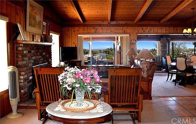40 mile desert views and the San Gabriel mountains as a backdrop. The Noggle Ranch is situated in Pinon Hills (elev 4500 ft) Winters are alive with snow flurries, cooler desert summers, and bright springtime desert plant blooms, with afternoon mountain breezes passing by. Views are seen from the kitchen, dining & foyer of the cedar lined interior home. Vaulted wood beamed ceilings open the home's space and feels like mountain living while the pellet fireplace system brings cozyness your evening rests in the living room. Great room: living room, dining room and Kitchen provide wonderful window views at kitchen bar or while seated for a family feast in the dining room. Having coffee in the east side sunroom area off the master bedroom in the morning, while the rising sun breaks through the window, or perhaps it's the private open air patio out the slider doors suits the morning wake ups. Westside Sunsets are framed by picture windows and shaded by aluminum awnings just out the living room. The fenced in 3.8 ac, white vinyl 3 rail fence, lines the yard that is manicured like a country theme park. Every Part of this working horse ranch has been maintained diligently, from the Tack, hay, feed and saddle sheds, to the 3 horse stalls, feeders and the round pen. It's so beautiful! We love the Noggle Ranch and so will you!