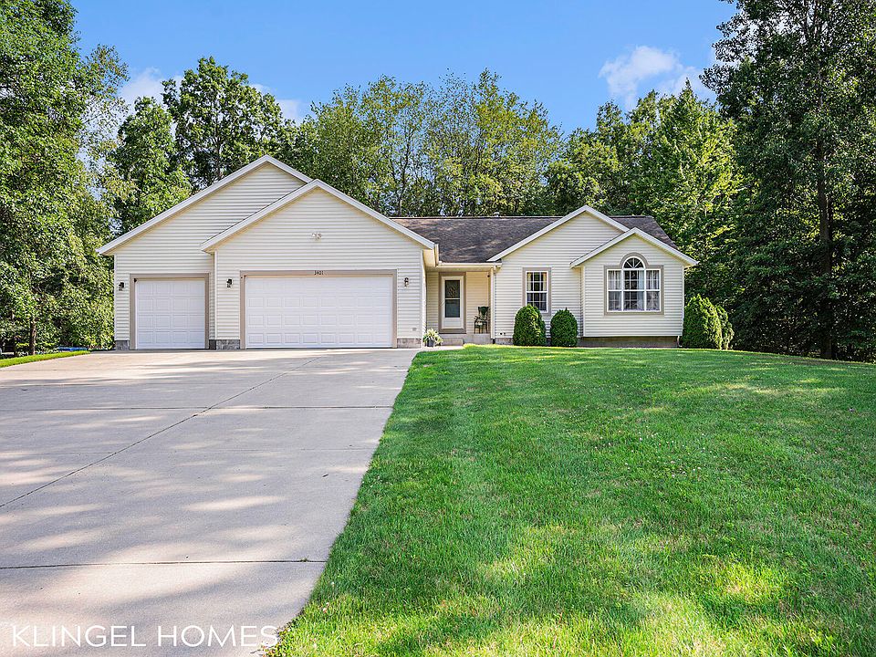 Welcome to 3401 Rambling Brook Rd, Muskegon! This beautiful 3 bedroom, 2 bath ranch style home is situated on a quiet cul-de-sac close to shopping, schools and beaches! This home has been meticulously maintained and offers tasteful updates throughout the entire main level. The kitchen features all new appliances, new luxury vinyl flooring and quartz countertops. The living area offers vaulted ceilings and a cozy fireplace! The primary bedroom recently underwent a remodel and now features a walk-in closet, double vanity with quartz countertops, and new soft close cabinets to include a linen cabinet. The secondary bathroom also features updated quartz countertops, new flooring and new light fixtures. The lower level is ready to be finished if extra space is desired but currently provides new flooring and plenty of storage. This home also offers a three stall garage that has been finished with insulation and more! This home is move-in ready! Call today to schedule your private showing!