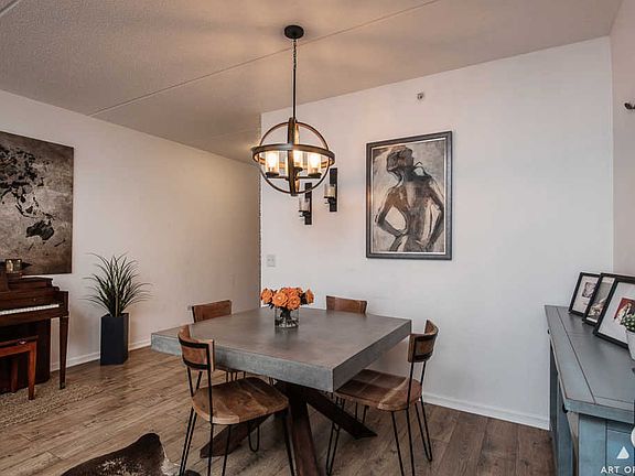 Beautiful 2 bedroom 2 bath condo in well maintained complex. Spacious unit with modern open floor plan. Corner unit with windows on two sides. Large kitchen with dark espresso cabinets and eat-in island. Newer wood laminate floors throughout. Upgraded light fixtures. In unit washer and dryer. Unit comes with one parking spot in the underground heated garage and storage locker. Flexicore construction. Great location close to Route 53 & Kirchoff, great for commuters, near Woodfield mall and shopping. Check it out today
