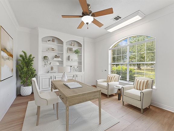 Walls of windowsAll-brick one-story homeCustom built-insQuartz countertopsNatural lightGated drivewayGenerous storage