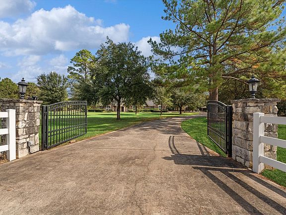 From the moment you pull through the gated driveway, this all-brick one-story home commands attention. Set on over 2.1 acres, it offers privacy, space, & thoughtful craftsmanship throughout. Inside are 4 bedrooms, 4 bathrooms, & a dedicated office. The living room features a fireplace & walls of windows that fill the home with natural light & overlook the property. Three bedrooms & three full bathrooms are on the main level, while a door near the garage leads to an upper-level retreat with a chair lift, a spacious living area or office, & a fourth bedroom that can serve as a second primary suite. The home has been beautifully updated with luxury vinyl plank flooring, fresh interior & exterior paint, quartz countertops, custom cabinetry, a new Trane HVAC and the roof (2021). The 4-car garage features custom built-ins, generous storage, & an adjoining workshop. From the speakeasy front door to the covered back porch, this property delivers style, comfort, & Texas charm!