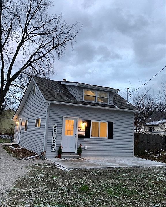 Cute, Totally Renovated Cozy Home! All new in 2025: New roof, new windows, siding, doors, concrete front slab patio area and side door area concrete slab. Inside new kitchen including new cabinets, stainless steel appliances. New flooring and lighting in whole house. New furnace. New bathroom includes new vanity, sink, toilet, tub surround. 1 bedroom down, spacious loft area with closet upstairs. Close to shopping, restaurants, freeway access and Lake Erie Parks! Move-in ready! Come check out this adorable home!