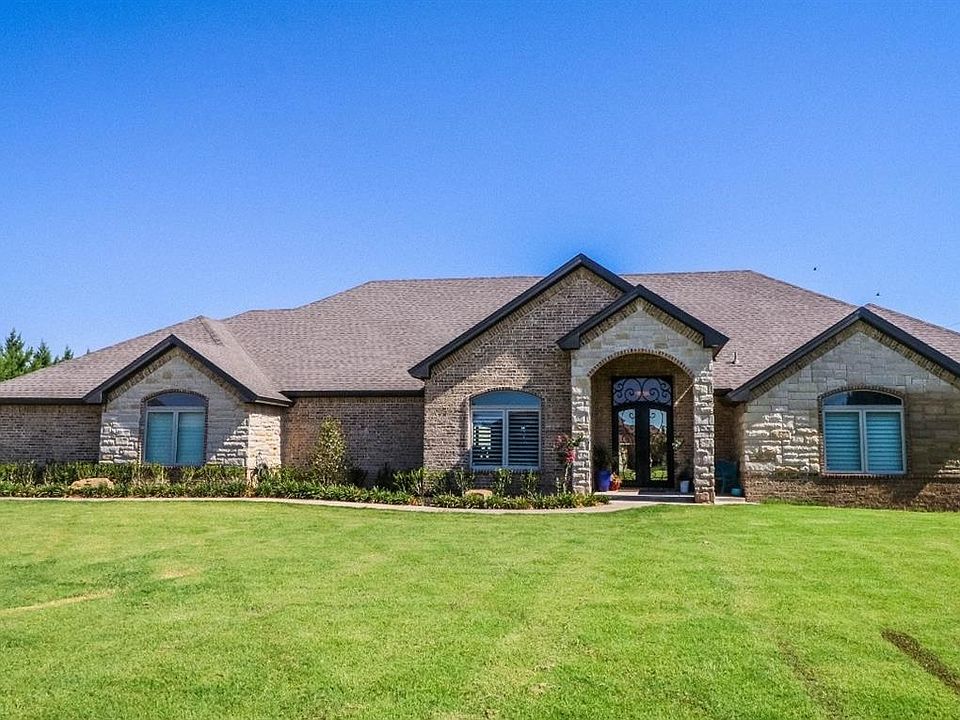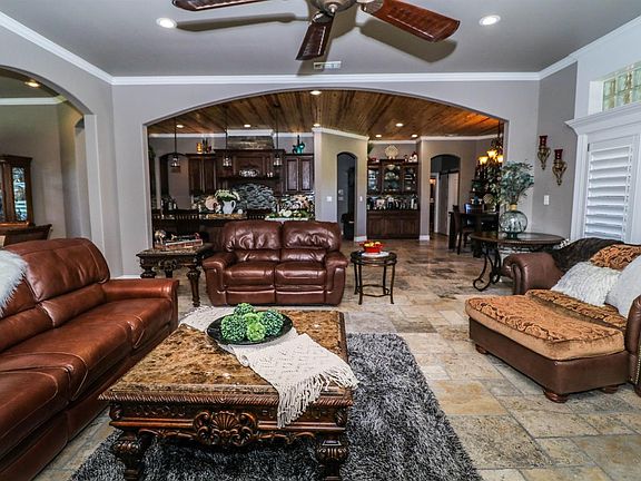 Beautiful 4 bedroom 3.5 bathroom home nestled on corner lot in Kemper Estates on almost an acre of land with 400 SF basement and 646 SF upstairs living space/game room. Gorgeous wood planked ceiling in kitchen and spacious living area - perfect for large gatherings and entertaining. Living area features high ceilings, floor to ceiling stone fireplace, large windows open to covered patio and backyard. Attached 3 car garage with separate 30x40 shop with large overhead door.