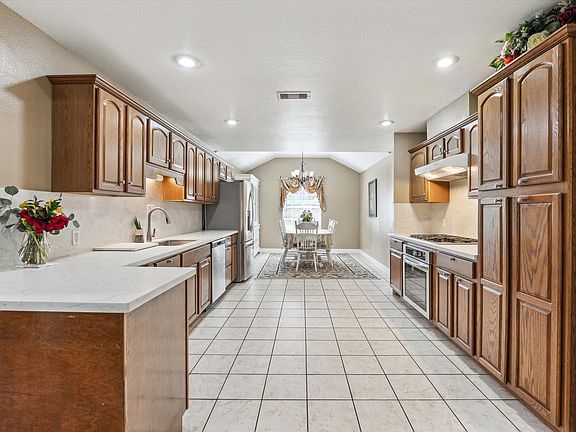 Outdoor kitchenLots of cabinet spaceBright dining roomPlenty of shadeLots of windowsNew quartz countertopsExpanded covered patio